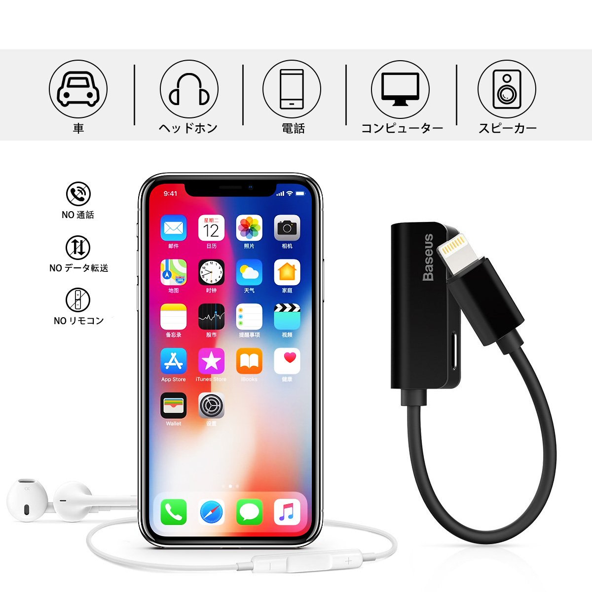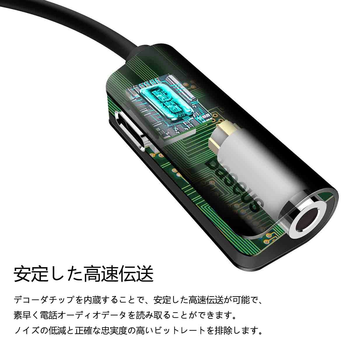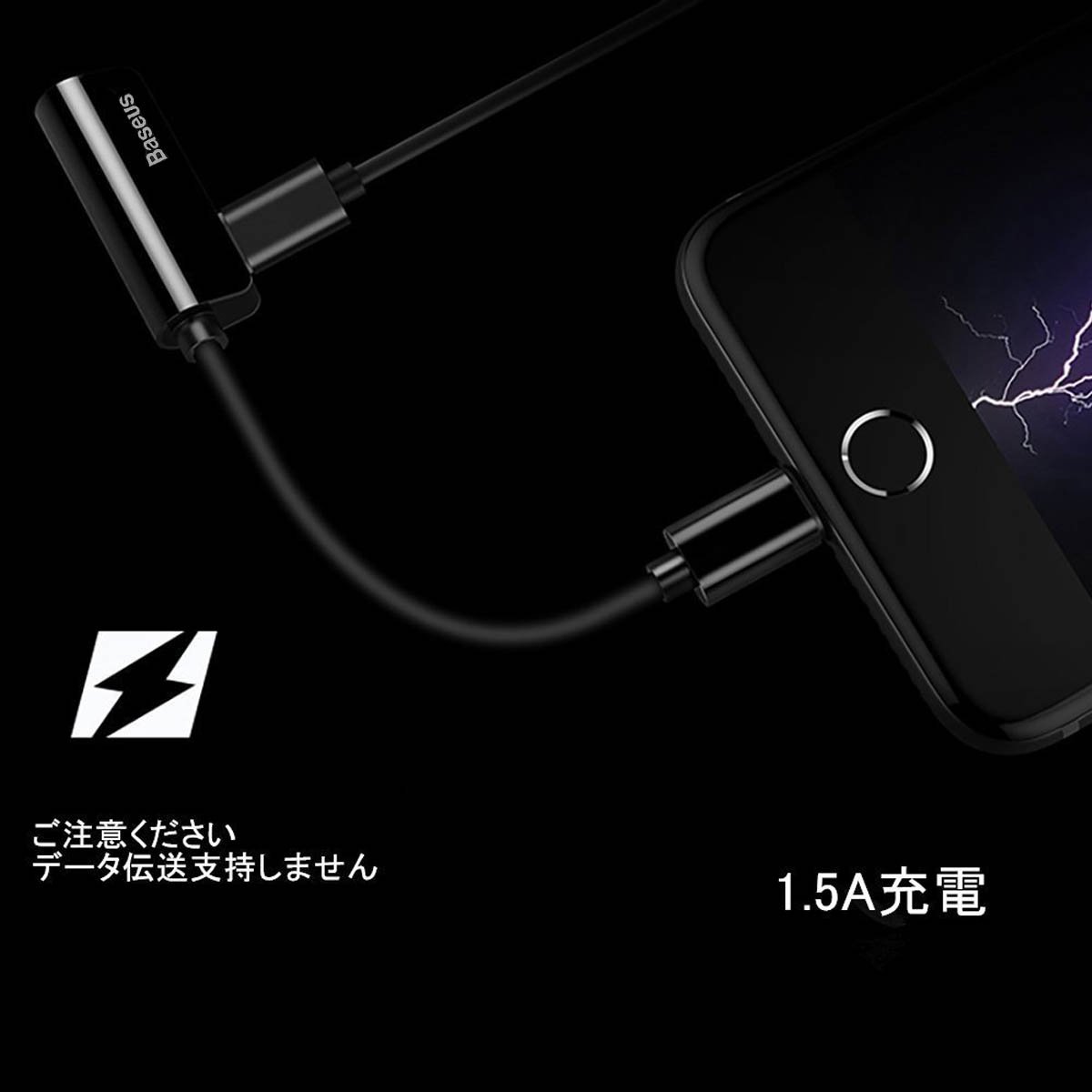 3.5 mm headphone jack on BASEUS 2 in 1 lightning cable, charging adapter for iPhone 7/7 plus