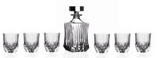 Product DescriptionRCR Crystal 7-piece whiskey set. Includes 1 decanter and 6 double old fashioned glasses. Made in Florence Italy. Holds 11-ounce.0