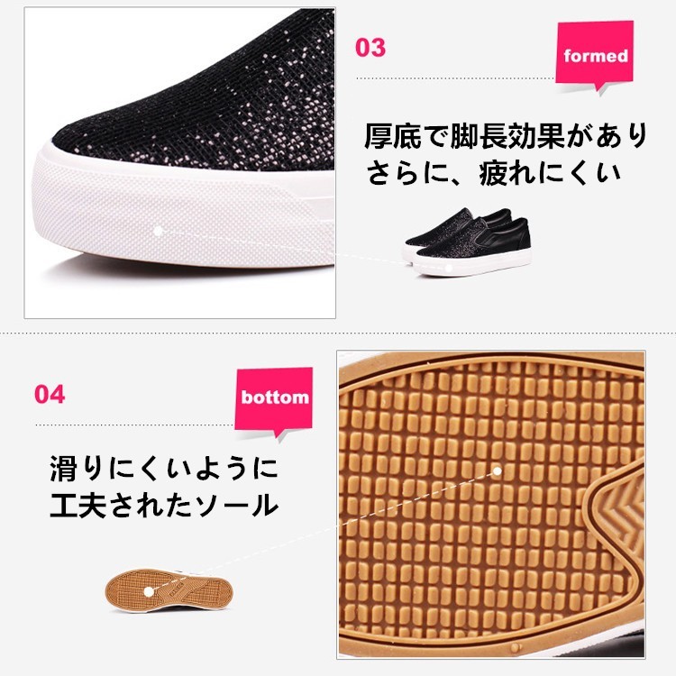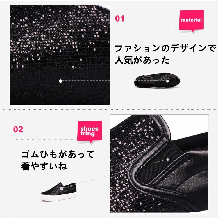 ★ご注意;こちらの商品は午後三時までにご入金いただければ1-3営業日に出荷対応致します。希に一時在庫切れの場合、お取り寄せになります。取り寄せの場合、入金後5日ほどに発送いたします。予めご了承くださいませ。スニーカー スリッポン レディース 美脚 フェイクーレザー靴 春 スリッポンシューズ 夏 厚底 無地 フラット ボーダー ぺたんこ 新作 be025 学生 人気 男女兼用 LOAFERS 軽量★素材:エナメル革 ゴム★ヒール高さ(cm):3cm★カラー:黒 シルバー※画面上と実物では多少色具合が異なって見える場合もございます。ご了承ください。★サイズ(cm):35(22.5) 36(23) 37(23.5) 38(24) 39(24.5) 40(25)※ サイズは人の手によって測っているため。実寸は商品によって(0.5 cm前後)に誤差が生じる場合がございますがので、予めご了承くださいませ。