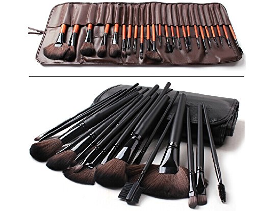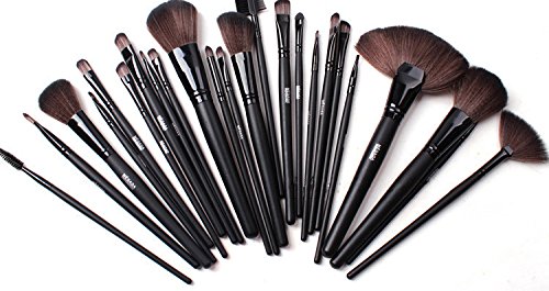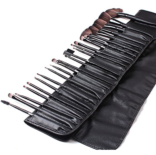 Megaga Makeup Brushes-Studio Quality Natural Cosmetic Brush Set with Leather Pouch, 24pcs makeup brushes set (Black)