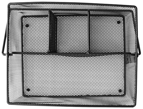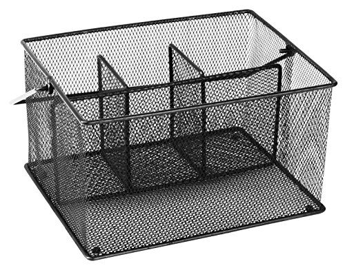 Expertly Organize Your Routine Items with This Mesh Utensil Caddy in Possession Organizing your daily routine items is not an issue anymore as this matter is taken care of with this mesh utensil caddy. It has the dimensions of 25 x 19 x 14 cm, making it easily accommodate plenty of items. It also has four built-in compartments (one large and three small) to easily hold a variety of products in their respective places so that they can be easily available on a timely basis. So keep cutlery, napkins, office supplies, accessories, beauty products, toiletries, and what not in this utensil caddy. ? Top Quality Metal Construction with Classic Black Finishing It's solidly constructed using top quality metal which ensures that the caddy stays in great shape for long so that you can have the best use of it. Its lightweight design with a carrying handle provides great assistance while carrying the caddy indoor/outdoor. Also, the classic black finishing on the mesh design complements any decor well to deliver a stylish appeal when kept on a countertop, table. ? Serves You Best on Various Occasions It’s an ideal choice to make when it comes to hosting small to large parties, events, gatherings and more. Its tough construction makes sure that it serves you best in both, indoor and outdoor conditions. It’s great for home, restaurant, and office use. 0 |