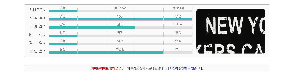색상은 기본 컬러인 블랙과 화이트 2가지로 준비되어 있고 부드러운 면원단으로 착용감이 좋은 아이템이다.