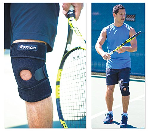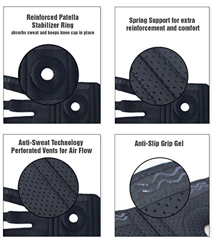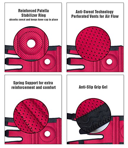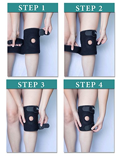 -. Feature : OPEN-PATELLA DESIGN: Our high quality padded Knee Brace Compression Wrap supports circulation and proper motion, while providing compression therapy, pain relief, injury prevention, relieving stress, and preventing displacement by guiding the knee cap into proper position. / ADJUSTABLE: ONE SIZE FITS ALL - The 3 Velro adjustable support straps can be adjusted to any tightness to fit your comfort and provide patella stabilizer functions. SOFT AND COMFORTABLE: Soft inner material is breathable and prevents rashes. / STABILIZER RING: The reinforced knee ring design ensures stability and proper positioning of the knee cap into correct motion. / EXTRA THICK NEOPRENE: The insulated high-quality Neoprene material improves blood circulation around the injury and speeds up recovery from Arthritis, knee pain, inflammation, meniscus tear, and sports injury. / BREATHABLE: The perforated moisture vents prevent sweat buildup and allow for cool comfort at any temperature. Perfect for active sports such as running, weight lifting, basketball, or MMA.