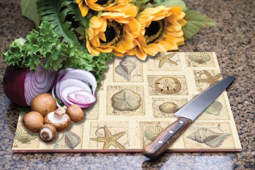 CounterArt Shell Collage Glass Cutting Board, 8 by 12-Inch