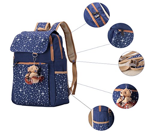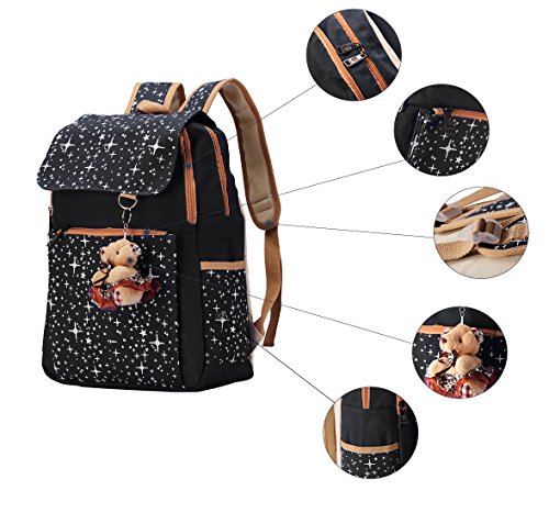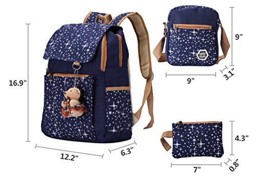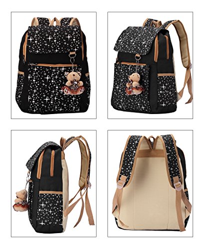 Product DescriptionVeenajo Girls Lightweight Canvas Backpack Set Cute Patterned Bookbag Shoulder Bag School Backpacks0