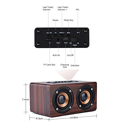 -. Title : Portable Wireless Wooden Bluetooth 4.0 Speaker, Dual Speaker System 10W Output Bluetooth Loudspeaker with Enhanced Bass, Compatible with iPhone, iPad, Samsung, HTC and More