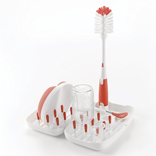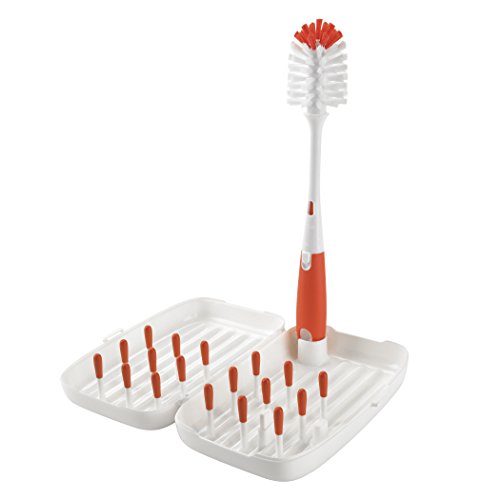 OXO Tot On-the-Go Travel Drying Rack with Bottle Brush- Orange