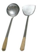 -. Feature : Spatula helps make cooking and scooping quick, easy & efficient / Contour and sloping sides fit well into curved wok / Ladle has round bowl necessary for serving soups and sauces / Wooden handle prevents ladle from getting too hot to grasp