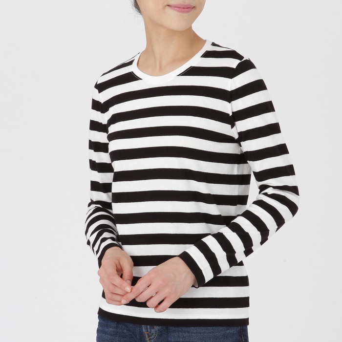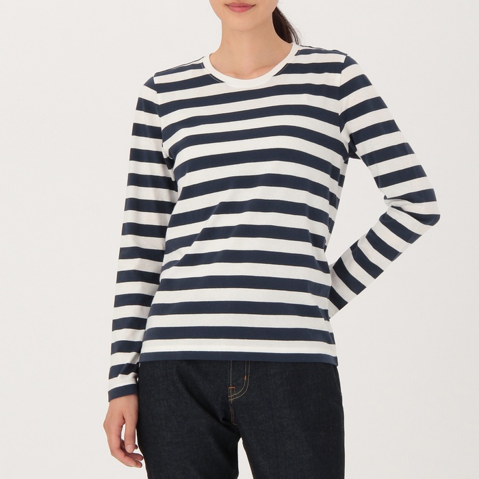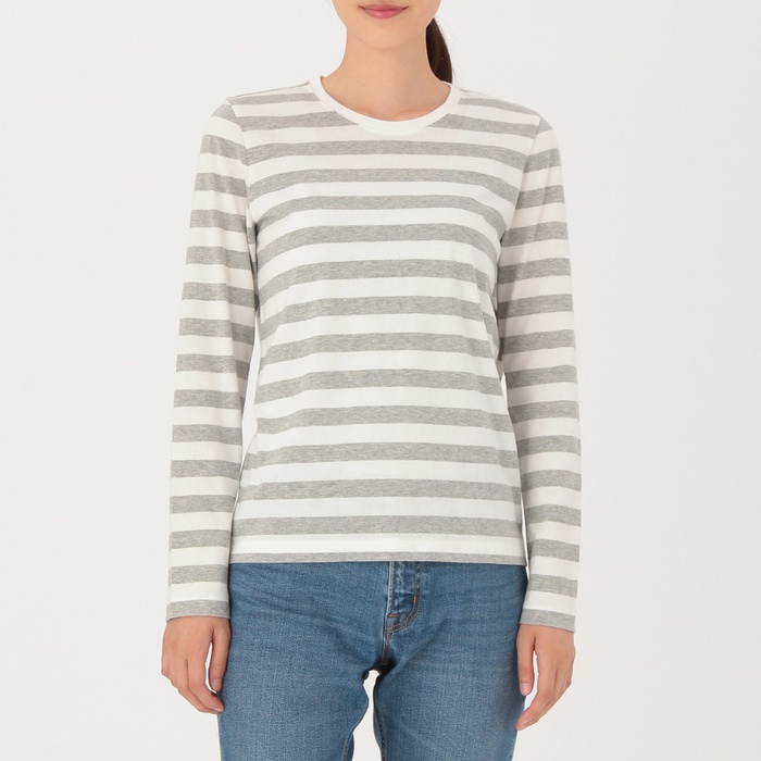 Muji 오거닉 코튼 크루 넥 긴 소매T셔츠(보더) 부인XXL흰색×라이트 그레이 편의점 수취가
