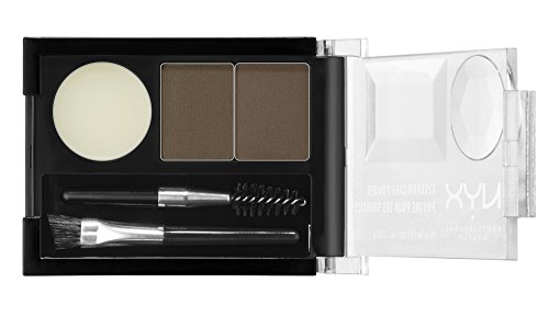 Eyebrow compact that includes two shades of powder to fill in and define brows and a pot of wax to hold brows in place
