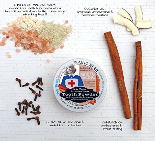Frau Fowler Mouth Medic Tooth and Gum Powder, Cinnamon and Clove, Botanically Clean, Teeth-Whitening, Remineralizing, Fluoride Free, Gluten Free, SLS Free used to Strengthen Enamel and Freshen Breath!