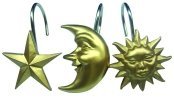 Twofishes 12 PCS Fashion Decorative Home Bathroom Vintage Style Gold Shower Curtain Hooks Rings (Sun: Gold ; Star:Gold ; Moon:Gold )