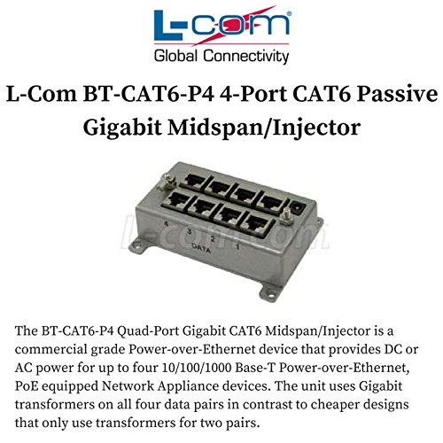L-Com BT-CAT6-P4 4-Port CAT6 Passive Gigabit Midspan/Injector