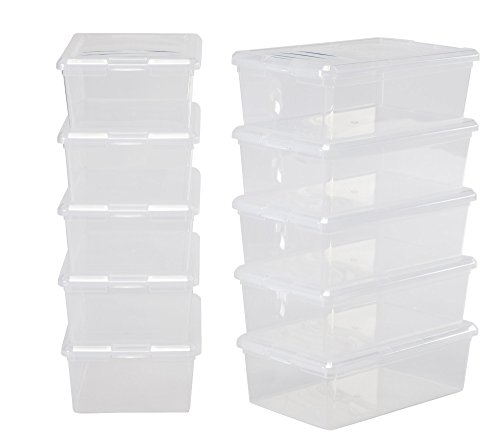 - Feature : Includes 18 shoe boxes and lids / Super clear design for easy visibility / Flat lid that snaps shut and accommodates most sizes of women's shoes / Unti Dimensions: 13.6 x 8.1 x 4.4 Inches / Made in the USA