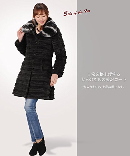 -. Feature : レッキスのトリミングで華やかさUP!リバーシブルコート。 裏側は袖の先までファーを使用し、贅沢なリバーシブルデザインに。 襟にレッキスをたっぷりとトリミングしています。 / ■サイズ 【M(9号)】着丈89cm、胸周り98cm、裄丈80cm 【素材】 表地/裏地:ポリエステル100% 毛皮:レッキス、ラビット 【留具】 ボタン×4(両面とも) 【備考】 ・ポケットが両面とも、左右1つずつあります。 / 表地/裏地:ポリエステル100% 毛皮:レッキス、ラビット / 袖は9分丈です。 / (No. 4051 r )