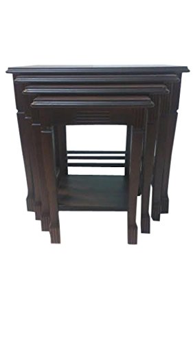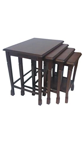 -. Feature : Set of 4 Nesting Tables with 4 Different Sizes / Transitional Style, Walnut Finish / Materials: Solid Beechwood, MDF, Veneer / Stackable & Easy to Carry / No Assembly Required