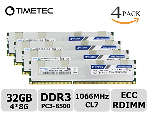 Timetec Samsung 32GB KIT (4x8GB) DDR3 1066MHz PC3-8500 Registered ECC 1.5V CL7 4Rx8 Quad Rank 240 Pin RDIMM Server Memory Ram Module Upgrade (Server Only, Not for Desktop/Laptop)( 32GB KIT (4x8GB))