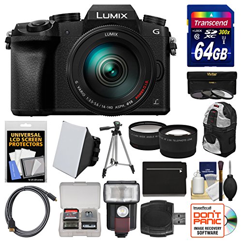 Panasonic Lumix DMC-G7 4K Wi-Fi Digital Camera & 14-140mm Lens with 64GB Card + Case + Flash + Battery + Tripod + Tele/Wide Lens Kit
