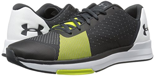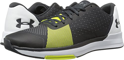 Studio : Under Armour Shoes Publisher : Under Armour Shoes Binding : Apparel Product Description Lightweight, jacquard knit upper is custom engineered for flexible, highly-breathable support where you need it most. Dynamic medial strap, integrated into lacing system for lockdown arch support that moves with the foot. Padded foam collar for a secure fit around the ankle. TPU toe cap eyestays for increased durability. Die-cut, full-length EVA sockliner for underfoot comfort a custom fit. EVA cushioned midsole absorbs impact . Flat platform, full rubber outsole custom designed for training versatility superior, multi-surface traction. Anatomically placed flex grooves offer proper flexibility in key areas. Offset: 5 mm. Weight: 9.24 oz. 0
