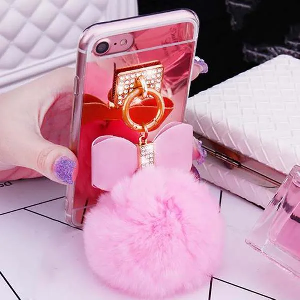 Features:Cute Rabbit Fur Fluffy Ball Case For Iphone 6 7 Plus Cover