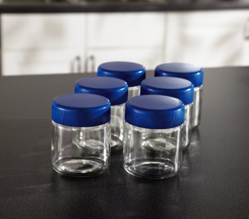 Includes set of (6) 7oz. glass jars with lids, large 1 qt. plastic container/lid and Greek yogurt strainer