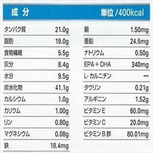 原材料:米、加水分解大豆タンパク、動物性油脂、ビートパルプ、加水分解家禽レバー