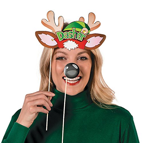 - This set of Christmas photo booth props includes antlers with named hats for Dasher, Dancer, Prancer, Vixen, Comet, Cupid, Donner and Blitzen as well as a white mustache, a brown mustache, a black nose and a red nose.