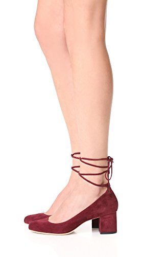 Product DescriptionSlender ties wrap around the ankle on these suede Loeffler Randall pumps. Covered block heel. Leather sole.0