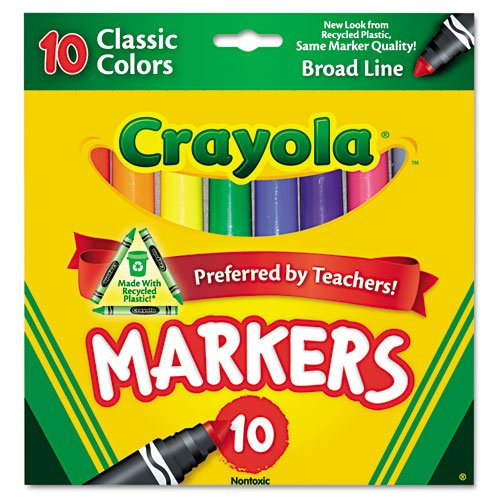 -. Title : Crayola Non-Washable Markers, Broad Point, Classic Colors, 10/Set