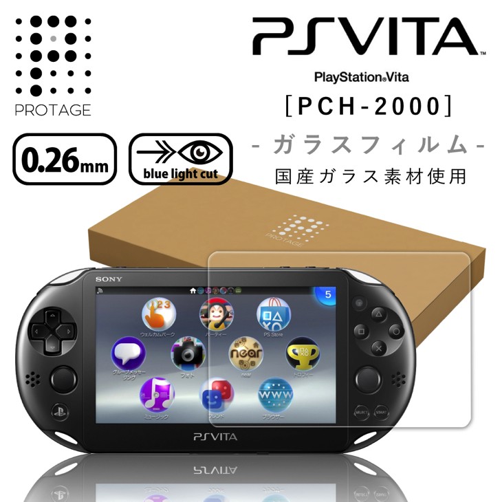【送料無料 】PROTAGE PlayStation Vita フィルム ガラスフィルム PCH-2000 シリーズ専用 ブルーライト カット 液晶保護 硬度9H 0.26mm 日本製素材 旭硝子 ブルーライトカット PSVita