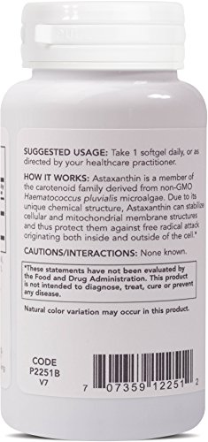 HOW IT WORKS: Astaxanthin is a member of the carotenoid family derived from Non-GMO Haematococcus pluvialis microalgae. Due to its unique chemical structure, Astaxanthin can stabilize cellular and mitochondrial membrane structures and thus protect them against free radical attack originating both inside and outside of the cell.* The Natural Astaxanthin used in this product is extracted without the use of chemical solvents.Feature