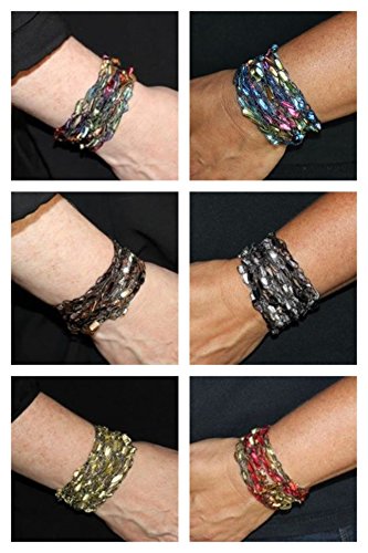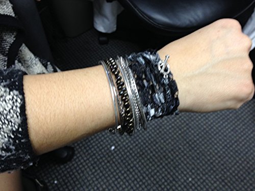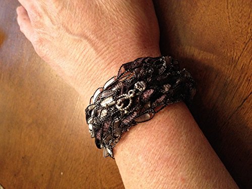 -. Title : 1 Wrap Bracelet Crocheted Yarn Black and Silver Wrap your wrist, neck and ankle!