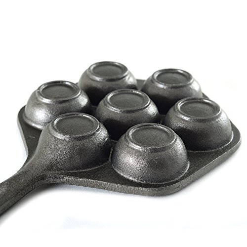 -. Feature : Pan makes 7 pancakes measuring 6.5 inches/16.5cm diameter and 2 inches/5cm deep / Made of cast iron / Recipe included / Pan measures 6.5 inches/16.5cm diameter / Hand wash, rinse thoroughly and dry with a paper towel - never soak cast iron