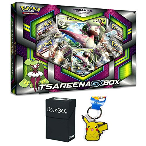 -. Title : Pokemon Tsareena GX Premium Collection Box with Tsareena GX Promo Card, Oversized Jumbo Pokemon GX Card, 4 Factory Sealed Pokemon Booster Packs, Pikachu Keychain and Ultra Pro Deck Box Bundle