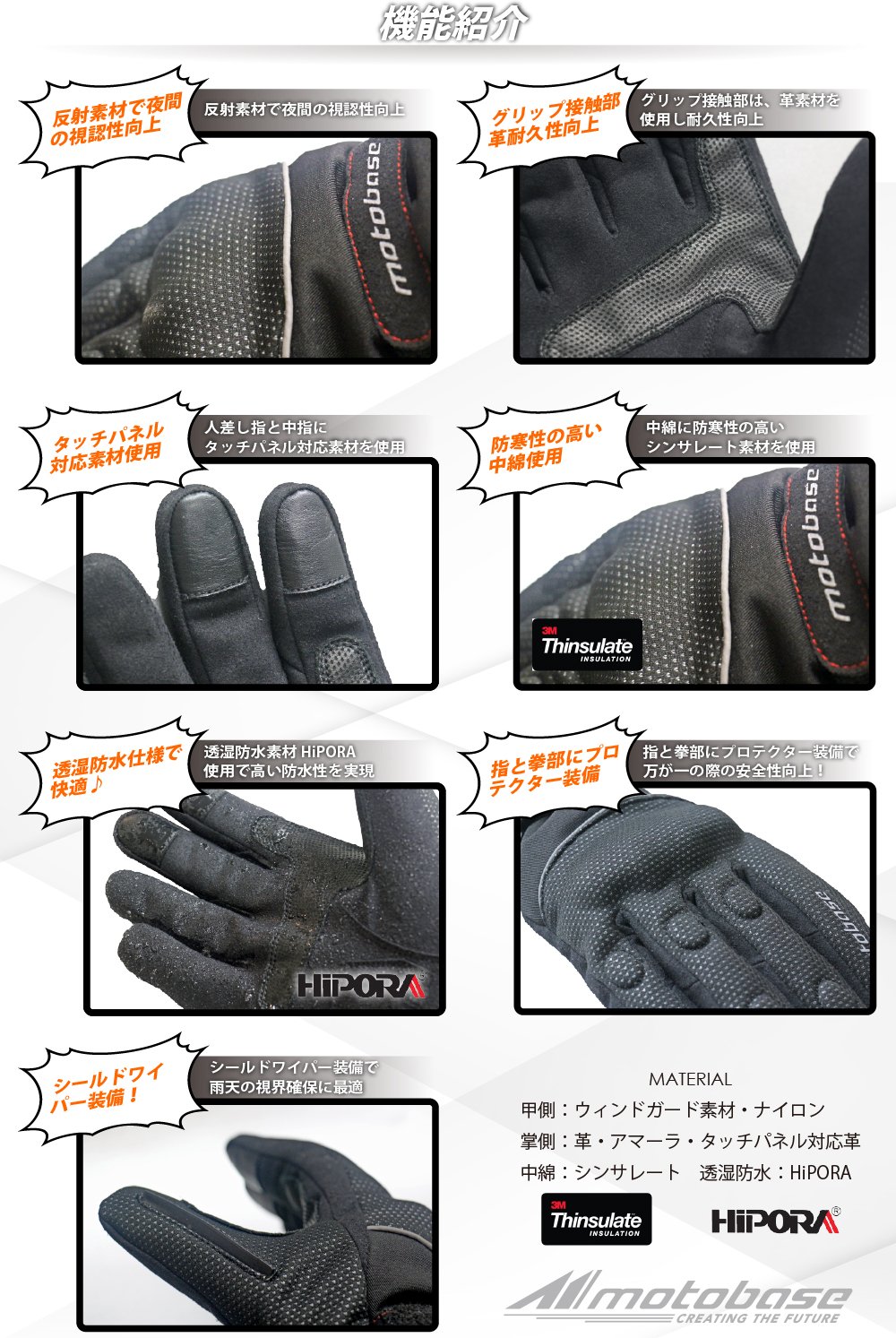 - Winter glove about the motto base which is best for the winter riding which synchronized cold weather, waterproofness, safety with high dimension!