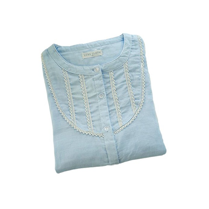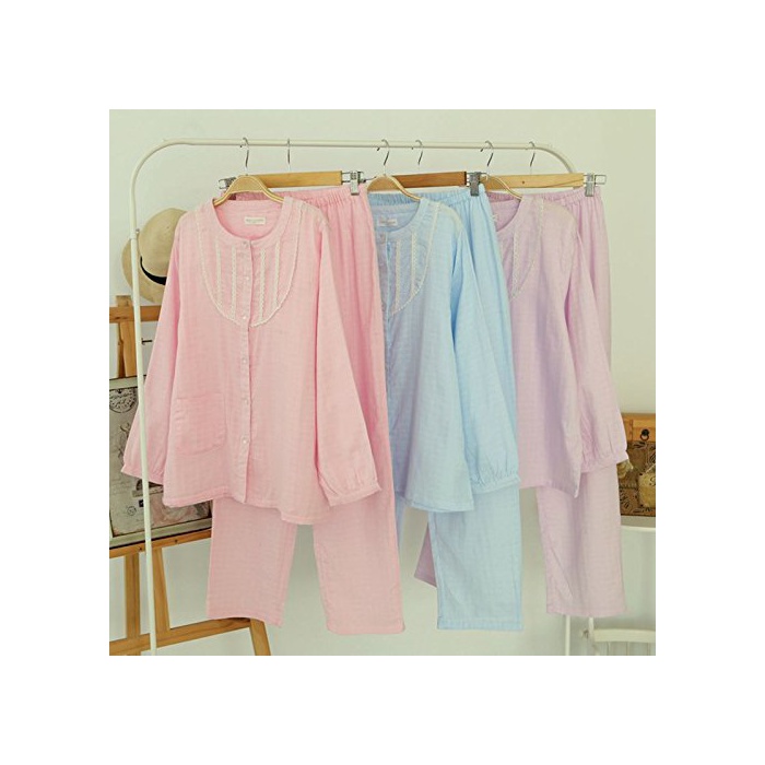 원본상품명: (エスライフ)S-Life レディス パジャマ 二重ガゼ 長袖 前開き 上下セット 綿 無地 純色 春夏 ソフト 柔らかい ルムウェア 部屋着 間着 便利服