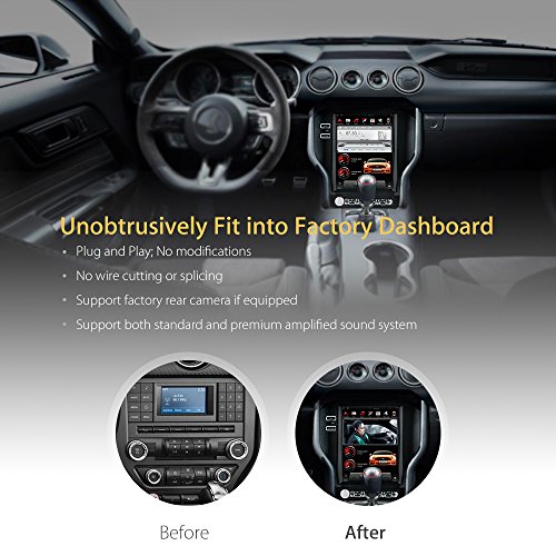 Fits 2015-2018 Ford Mustang; Android Operating System; Built-in Wi-Fi; Plug and Play; No modifications; No wire cutting or splicing; No extra interface or hardware required; Support factory back up camera if equipped;