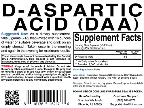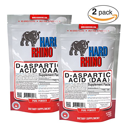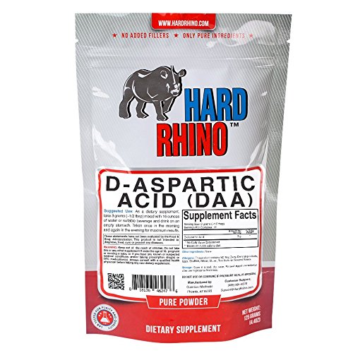 Hard Rhino D-Aspartic Acid (DAA) Powder, 250 Grams (8.8 Oz), Unflavored, Lab-Tested, Scoop Included