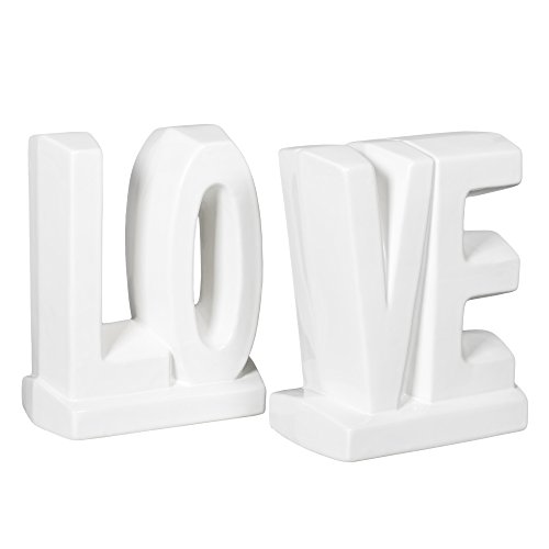White Glazed Ceramic LOVE 7 Inch Bookend Set