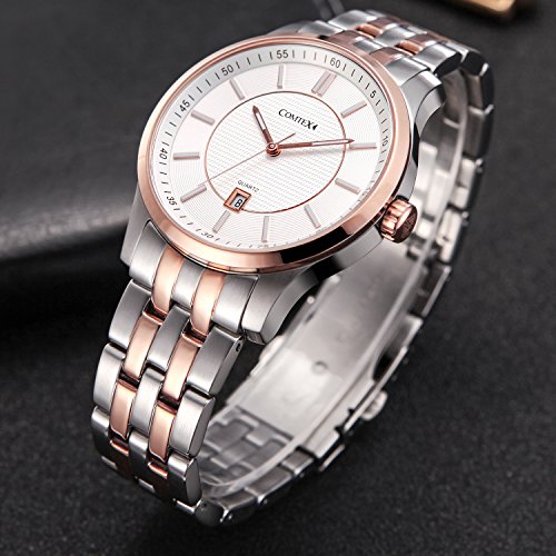 Comtex 레이디스 손목시계 맨즈 핑크 골드 스테인레스 밴드 캘린더 아날로그 일본제 쿼츠 워치 시계