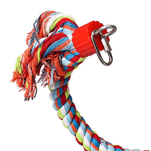 Product DescriptionSpecification: Name: Parrot climbing rope Material: Cotton steel wire bells Weight: 520g Length: 160cm Color: multi color Package include: 1 * Parrot toy rope0