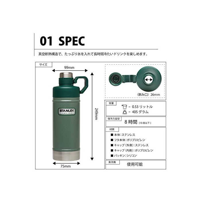 원본상품명: STANLEY(スタンレ?) 2017年モデル クラシック?空ウォ?タ?ボトル 0.53L グリ?ン 水筒 (日本正規品) 02105-021 グリ?ン