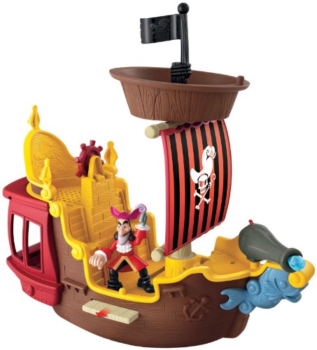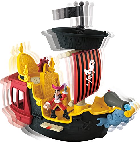 The Jake and the Never Land Pirates Hook’s Jolly Roger promotes the development of your child’s fine motor skills as he handles and manipulates Hook on his captain’s chair, on the ship, the plank or elsewhere. In addition, your child’s curiosity, discovery, imagination and creativity are promoted as he creates a number of battle scenarios of his own making.