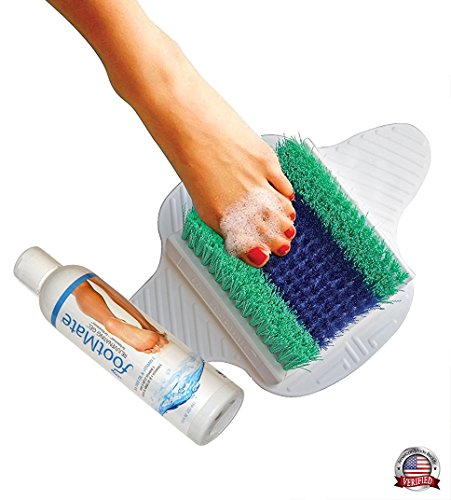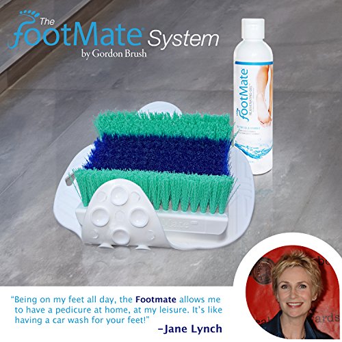 - INCLUDES: FootMate Brush and suction cups for safety, 7.5 oz Rejuvenating gel, Mildew resistant rope
