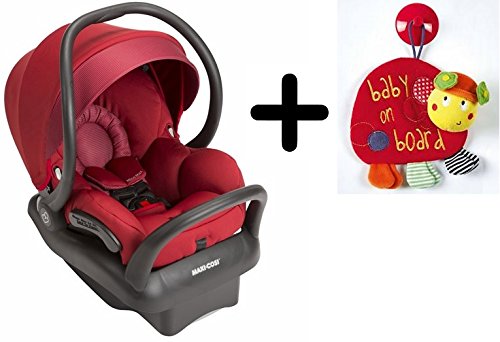 -. Binding : Baby Product -. Brand : Maxi-Cosi -. Color : Red Rumor -. EAN : 0352360250299 -. Feature : Self-wicking fabric deodorizes and draws liquids away from the skin to keep baby dry and comfortable / Easily removable fabrics for cleaning; innovative design allows for removal without rethreading harness / Machine washable and dryer safe fabric/ Reversible Cozi-Dozi infant support for smaller babies/ Extended canopy with flip-out visor for maximum UV protection / Infant insert for proper fit of babies as small as 4 lbs/ Adjustable base with rebound bar included/ 5-point harness is adjustable from the front / One click LATCH system for easiest installation/ Compatible with Maxi-Cosi & Quinny strollers and other premium strollers / Plus Free Baby on Board: Colourful and fun eye catching butterfly design./ Features & Benefits: 'Little lady on board' slogan./ Suitable for new born baby and above./ 15 cm approximate toy height. -. Label : Maxi-Cosi -. Manufacturer : Maxi-Cosi -. ProductGroup : Baby Product -. ProductTypeName : BABY_PRODUCT -. Publisher : Maxi-Cosi -. Studio : Maxi-Cosi -. Title : Maxi-Cosi Mico Max 30 Infant Car Seat - Red Rumor + Free Mamas & Papas Baby on Board -. UPC : 352360250299