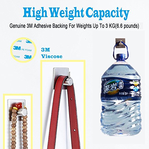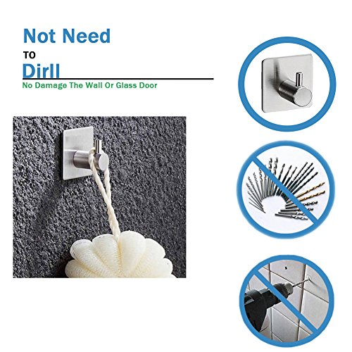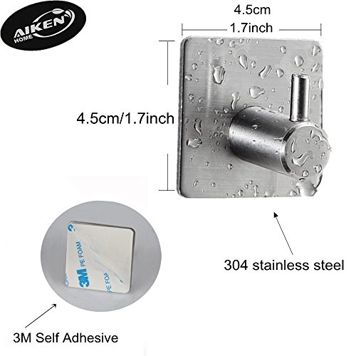 Towel Hook, AIKEN HOME 3M Self Adhesive Wall Hooks SUS 304 Stainless Steel Brushed Nickel For Coat Hanger Bathroom Kitchen Organizer (4 Pack)