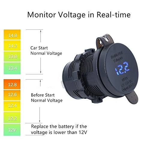 - Safety Driving: Built-in LED digital display voltage monitor, shows the accurate voltage status of device in real-time, prevent your motorcycle or car from starting hard, off and on intermittently and the headlights not enough bright cause by too low battery voltage, or prevent your motorcycle or car from engine instability or horns stopping working cause by too high battery voltage.