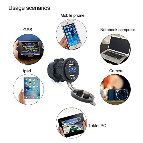 - Wide Compatibility: Fits for Car, Boat, Marine, ATV, RV, Motorcycle and other 12-24V Vehicles. Use for mobile phones, Tablet, GPS, digital cameras, PDAs etc.