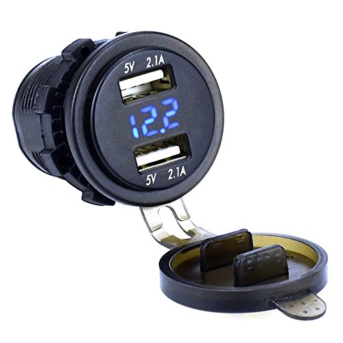 Cllena Dual USB Charger Socket Power Outlet 2.1A & 2.1A with 12V - 24V LED Voltmeter for Car Boat Marine Motorcycle Mobile (Blue)