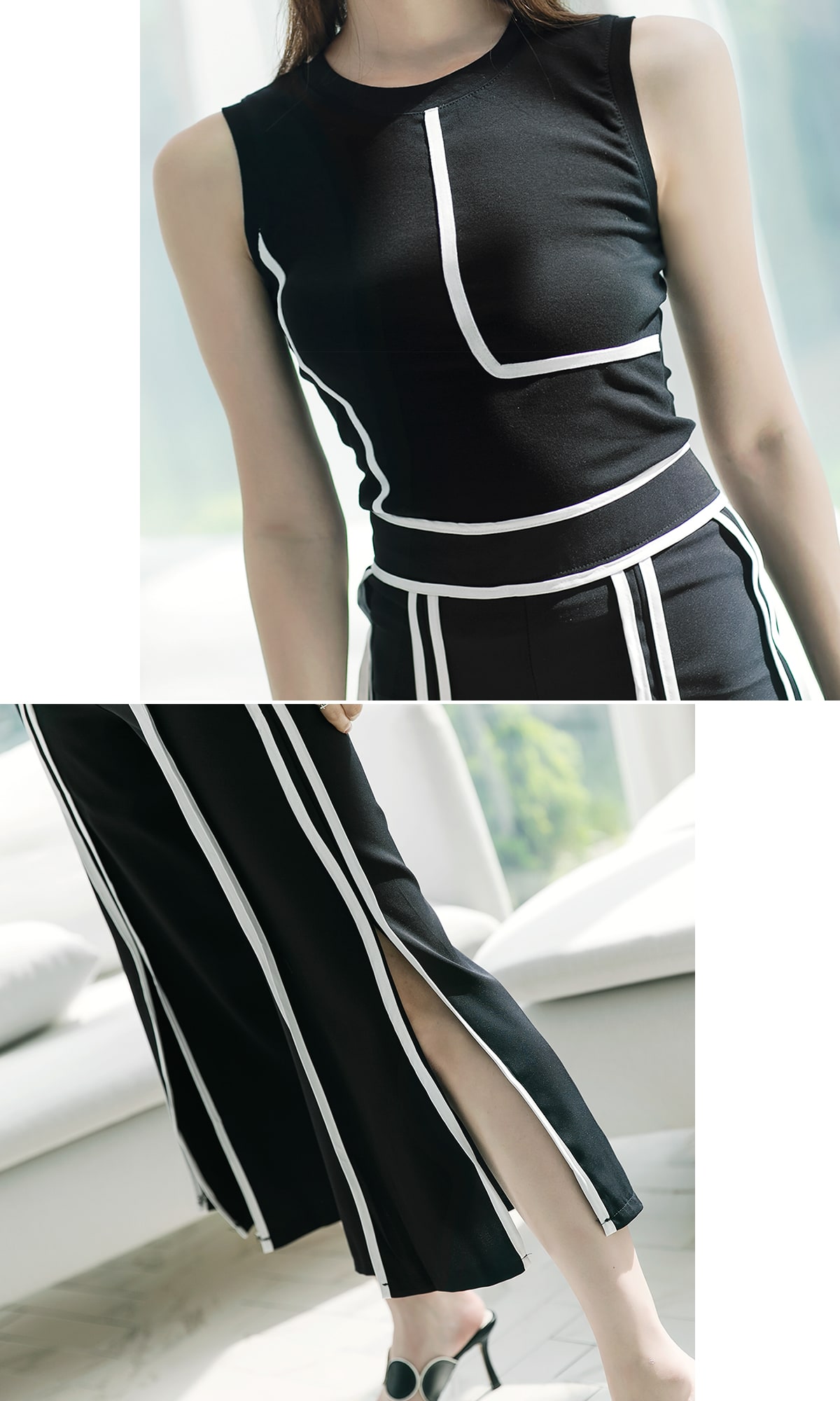 トップスとボトムの生地が異なります。この点ご参考お願い致します。
